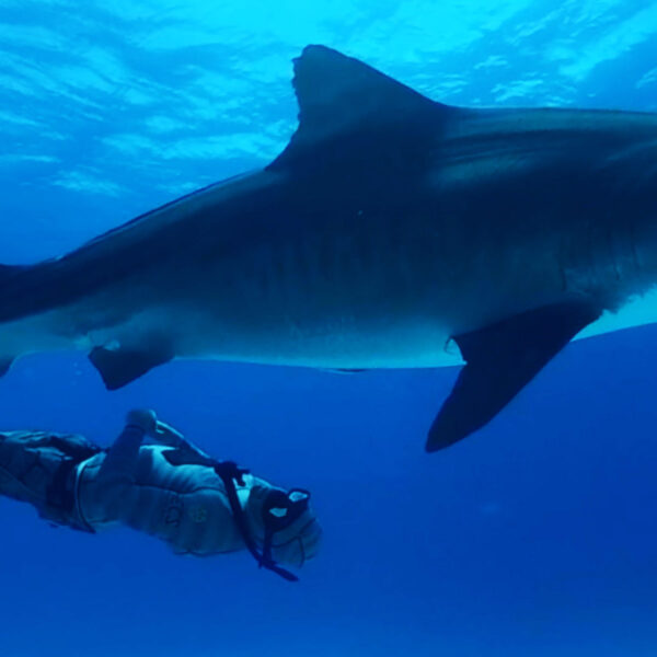 Currently playing: Shark Dive, an up-close encounter with some the apex predators of the sea. You will “swim” with divers as they explore Tiger Beach Dive Site off the coast of the Bahamas, feeding, taping, and even touching the animals in this designated shark sanctuary. Click here to watch the trailer.